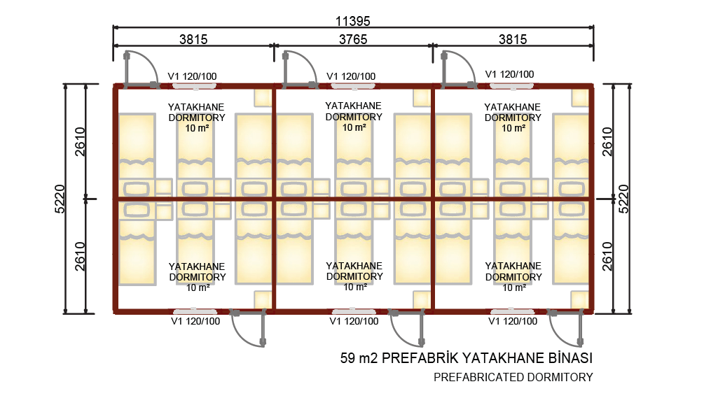 Kapı & Pencereler: Çelik dış kapı, metal kasalı Amerikan iç kapılar, standart pencere 120×120 cm