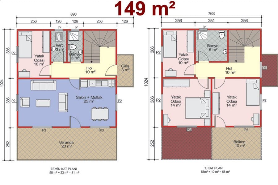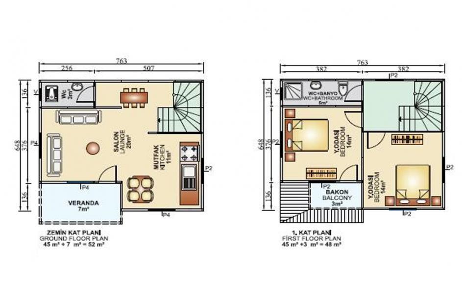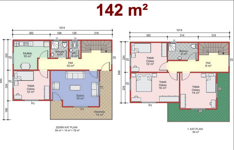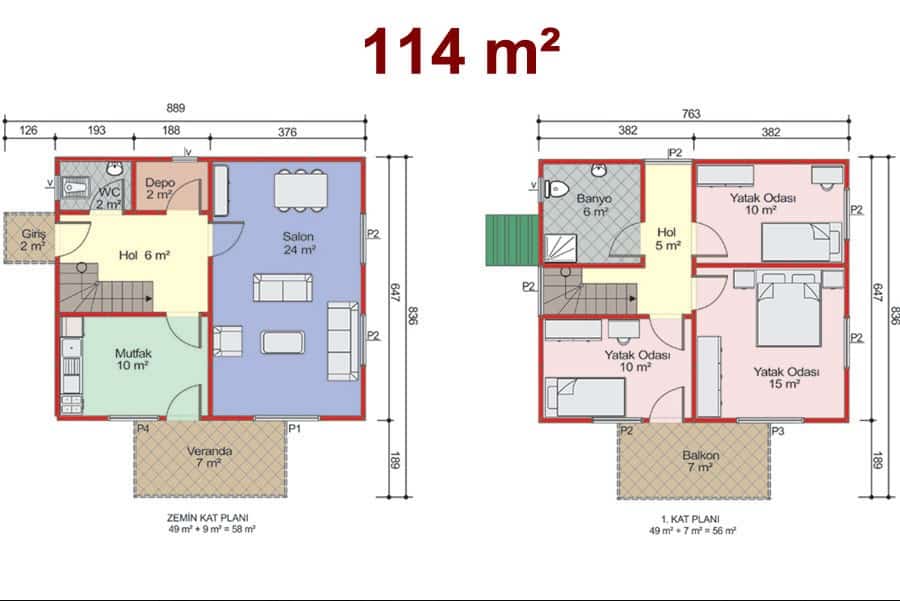 114 m2 3+1 İki Katlı Çelik Konstrüksiyon Ev