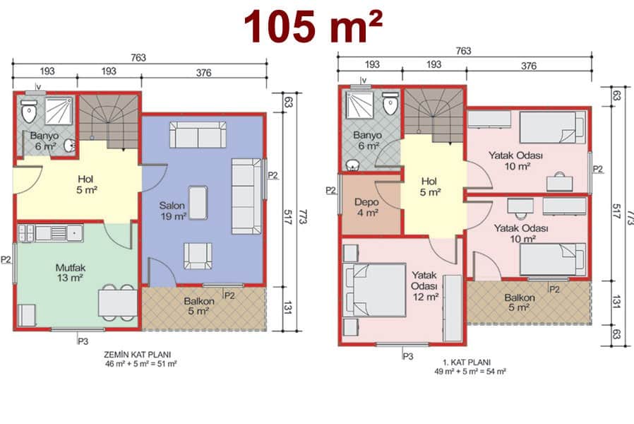 105 m2 3+1 İki Katlı Çelik Konstrüksiyon Ev