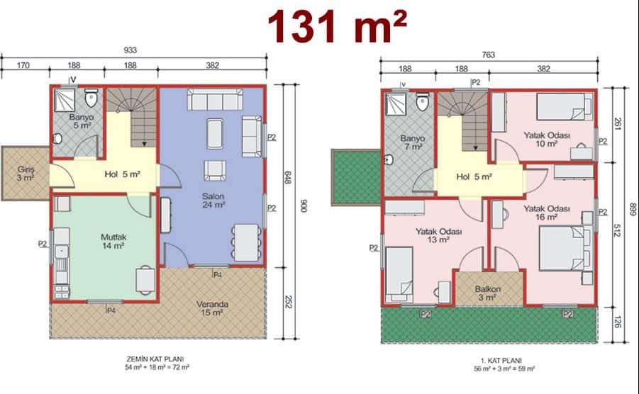 131 m2 3+1 İki Katlı Çelik Konstrüksiyon Ev